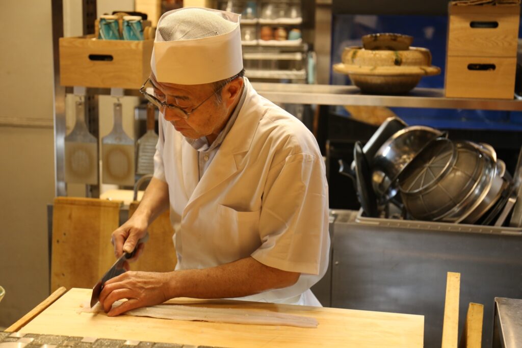 厚生労働大臣表彰「調理従事者賞」・京都府認定「現代の名工」の称号を持つ料理人が、天然魚を使い、目の前で料理方法をお教えします。